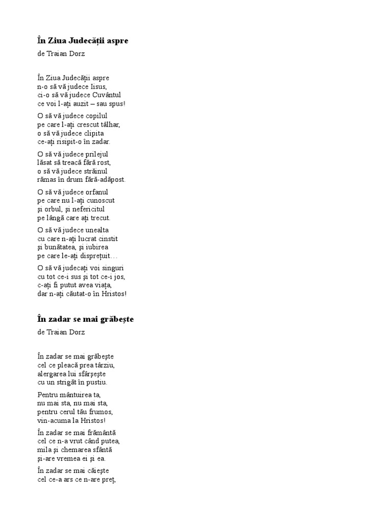 14 2018 poezii traian dorz 0 copiii credincioși cu alți copii sînt drăgălași cu nimeni nu se ceartă oricine de le ar face un rău ei îl iubesc și l iartă. 1914 1989 poezii cantari carte. Blestemul interdictiilor a planat însa mereu asupra lui parca pentru a l împiedica cu orice pret sa si împlineasca chemarea pentru care dumnezeu l a rânduit. Traian dorz albumul din cele mai frumoase poezii.