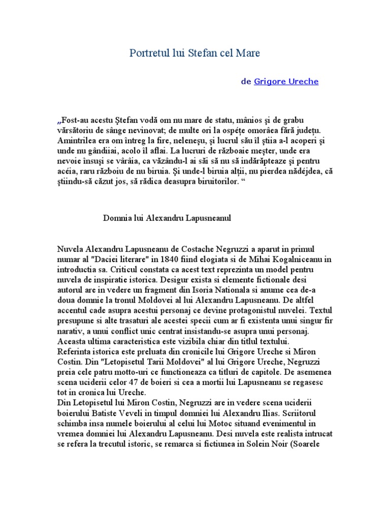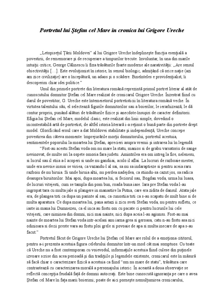 12 mai 2020 13 49. Are sensul obiectivitii. Oricum portretul lui tefan cel mare care lsat cronicarul grigore ureche este unul dintre ele mai importante att prin plasticitatea imaginii artistice.
