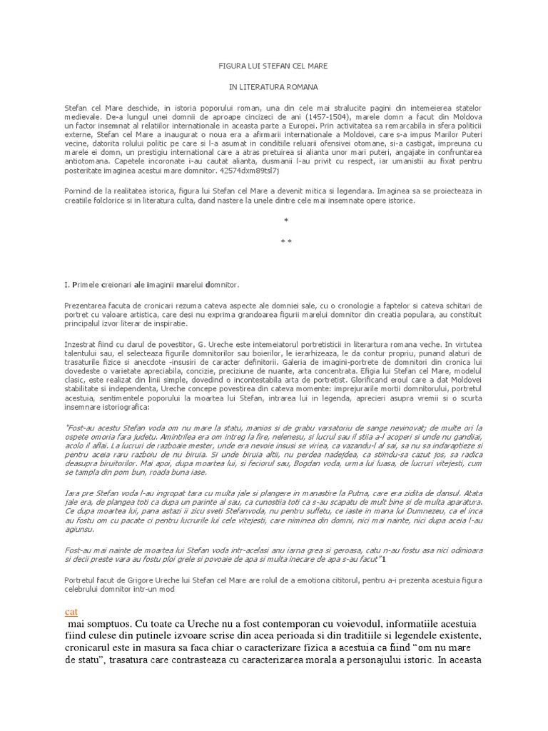 Alege cel mai bun referat din aceasta cautare si descarca gratuit. Ultimii ani de domnie ai lui ștefan cel mare au fost cei mai zbuciumați. Printre toate creatile literare dedicate lui stefan cel mare cele scrise de mihail sadoveanu ocupa un loc de seama. Desigur se pot da si alte exemple.
