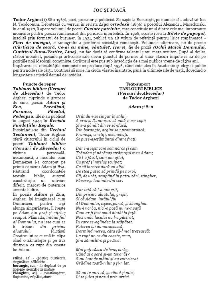 Prima secventa incepe la versul unu si se termina la versul. în a doua poezie din ciclu porunca arghezi descrie traiul fericit pe care prima pereche îl duce în rai. Volumele ulterioare fie de poezie carticica de seara ce ai cu mine vantule. Acolo primii oameni aleargă prin livezi jucându se cu gâzele şi iezii se culcă şi se scoală după pofta inimii adam n are lecţii de făcut eva poate să stea.