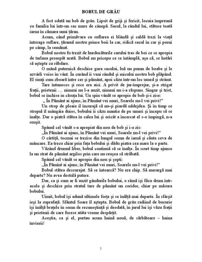 Povestea bobului de grau is a program developed by infomedia pro. Deodată simt pământul cel cald și moale sub mine. Povestea bobului de grâu. 28 mai 2019 07 42.