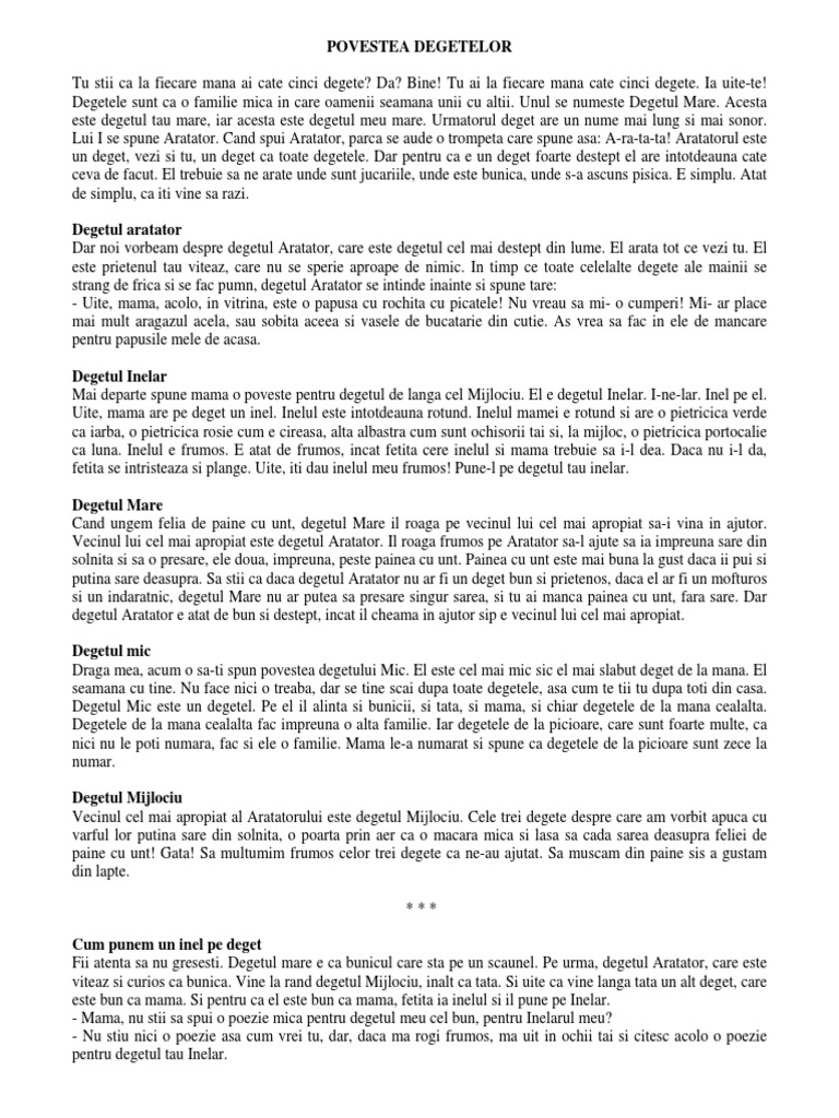Povestea celor cinci degete. Povestea celor cinci degete o poveste cu tâlc diana popescu august 23 2015 odată cele cinci degete care de obicei împărtăşeau o strânsă prietenie au pornit să se certe ca la uşa cortului. Carticica pentru copiii cu varsta de 2 3 ani. Acum impinge cu putere deget in deget pana cand mainile tale se transforma intr o piramida stilizata. Odată cele cinci degete care de obicei împărtăşeau o strânsă prietenie au pornit să se certe ca la uşa cortului.