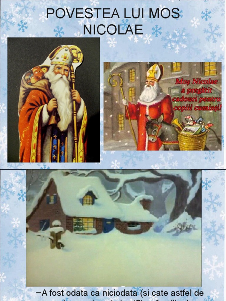 Povestea lui moş nicolae 2. Avem peste 24270 prezentari powerpoint format pps pptx sau ppt ppsx primite de la 1075 de persoane. Pentru a nu se intampla acest lucru a intervenit mos nicolae. Legenda lui mos nicolae reprezinta una dintre cele mai populare si mai frumoase sarbatori de iarna insa el a existat in realitate fiind cunoscut in lumea crestina ca sfantul nicolae.