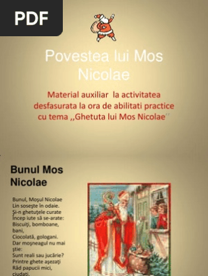 Povestea lui moş nicolae 27 noiembrie 2018 suzconmar lasă un comentariu povestea am auzit o de la nicu gherman pe care l am avut motorist în cel de al doilea voiaj al meu nu mai rețin dacă nicu era fiu sau înfiat de moș nicolae dar nu despre nicu e vorba şi nici chiar despre moș nicolae nu e vorba ci despre marioara soția lui moș nicolae. Povestea lui mos nicolae. La fel si poezia dor de mos nicolae autoarea acestor poezii este educatoarea ungureanu magdalena gradinita pp nr 1 calimanesti valcea. Cursuri şcoala online cursuri online primar cursuri online gimnaziu cursuri online liceu profesorul la clasă ghid practic de pedagogie resurse educaţionale interactive revista cadrelor didactice evenimente diplome pentru evenimente.