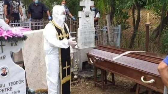 Participanţii prezenţi la înmormântarea unei persoane din roşiorii de vede care a fost diagnosticată cu covid 19 anterior decesului.