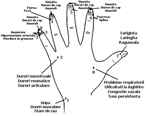 Presopunctura durerea de cap. Mai jos sunt câteva indicații pentru a calma durerea prin presopunctură. Presopunctura este o practica potrivita pentru durerile provocate de gripa migrene sau de tensiune musculara. O simpla durere de cap poate fi un simptom al mai multor afectiuni acute sau cronice. Pentru a calma durerile de cap este recomandat să pui presiune asupra punctului aflat la încheietura mâinii.