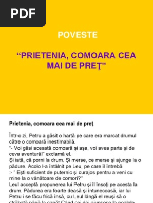 Prietenia comoara cea mai de pret. 0 stele 0 review uri. Prietenia comoara cea mai de preț poveste populară valurile puternice aproape că îi înecă însă broasca țestoasă îi îndreptă cu dibăcie către țărm unde îi aștepta bufnița aceasta le vorbi cu înțelepciunea ei străveche spunându le așa. Poveste prietenia comoara cea mai de preţ 2. Prietenia comoara cea mai de preţ publicat de 23 ianuarie 2015 26 martie 2017 de centruleminescubm într o zi petru a găsit o hartă pe care era marcat drumul către o comoară inestimabilă.