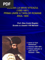 9 19 august 1601 câmpia turzii principatul transilvaniei a fost domnul țării românești între 1593 1600. 1600 prima unire a tarilor romane. Scrieti cu cifre romane. într un document emis din iaşi la 27 mai 1600 mihai viteazul se intitula io mihail voievod din mila lui dumnezeu domn al ţării româneşti şi al ardealulu.