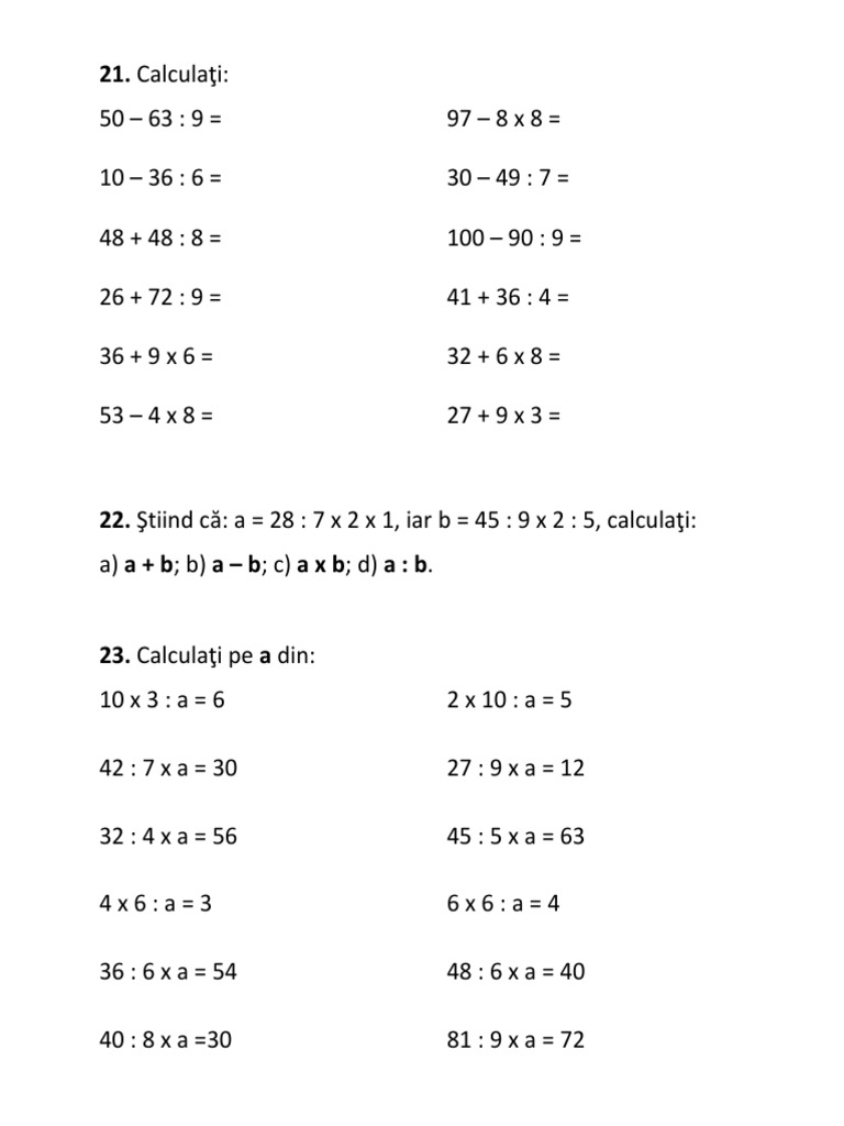 Probleme De Matematica Clasa 3 Cu Inmultire Si Impartire