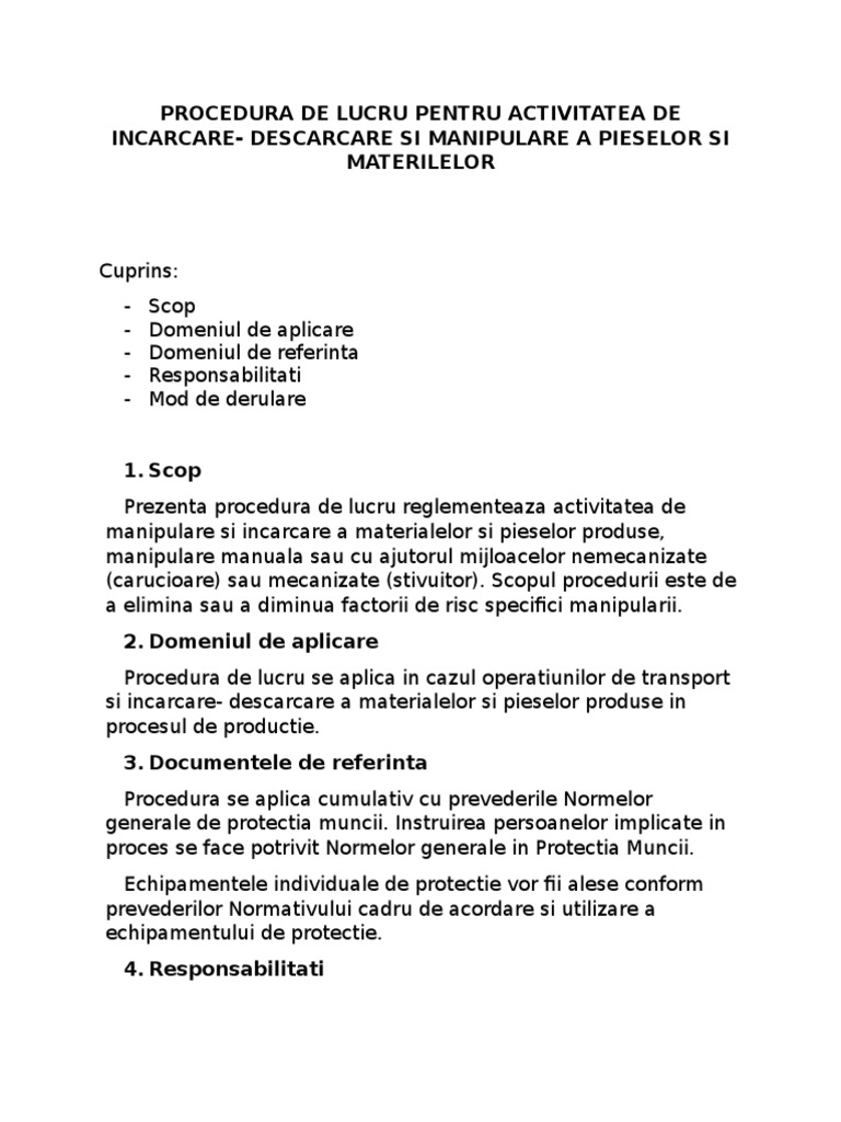 Ediție a unei proceduri operaționale. Mai intai probabil ar fi util sa explicam ce reprezinta procedurile intalnite si sub titulatura de proceduri interne proceduri de lucru proceduri de proces instructiuni de lucru. Prima mea inregimentare intr o institutie standardizata care se hraneste cu proceduri de lucru a fost la 19 ani cand am lucrat pentru putina vreme la mcdonalds in piata romana. Oportunități de creștere în carieră într o companie modernă.