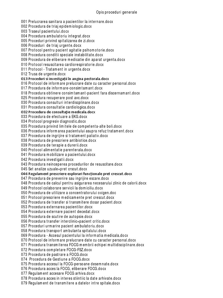 Proceduri operationale spital suceava. Spitalul județean suceava a fost militarizat. Ioan cel nou suceava. Opis proceduri generale 001 prelucrarea sanitara a pacientilor la internare docx 002 procedura de triaj epidemiologic docx 003 traseul pacientului docx 004 procedura ambulatoriu integrat docx 005 proceduri privind spitalizarea de zi docx 006 proceduri de triaj urgente docx 007 protocol pentru pacient agitatie psihomotorie docx. Este oportun și necesar să se introducă proceduri militare de a t.