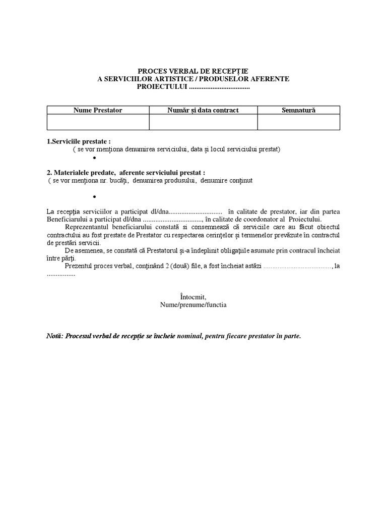 Proces Verbal De Receptie Servicii