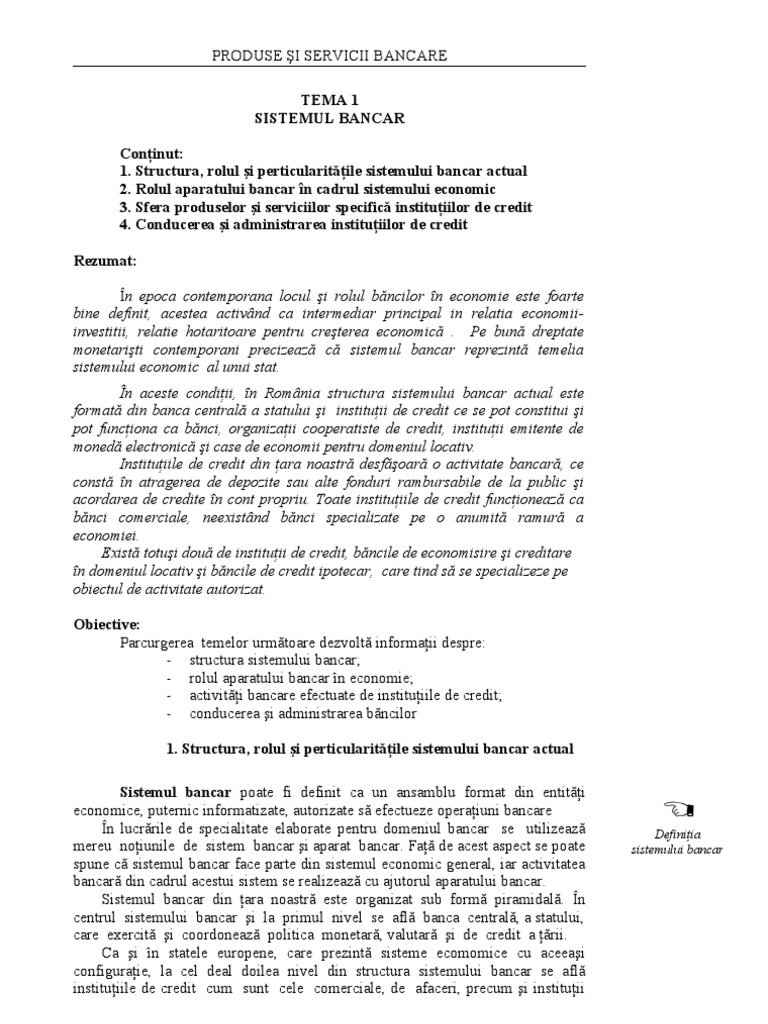 Sunt aspecte stabilite in urma discutiilor. Acestea sunt diferite de la o societal bancară la alta succesul unei bănci şi profiturile acesteia fiind determinate de tipurile de produse şi servicii bancare de simplificarea tehnicilor şi procedeelor de lucru specifice operativitatea şi promptitudinea serviciilor. Arhiva contine 1 fisier doc de 73 de pagini. Acest proiect trateaza produse si servicii bancare oferite persoanelor fizice.