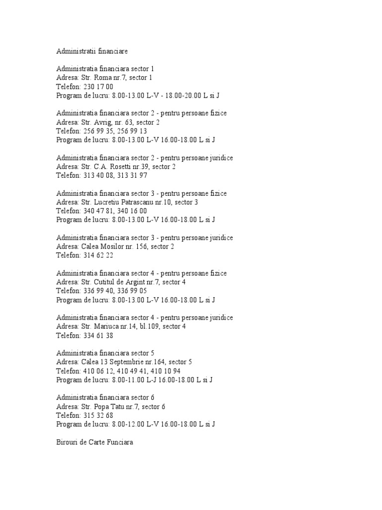 Adresa administratia financiara sector 1 informatii persoane juridice telefon email contact program orar administratii financiare administratii locale.