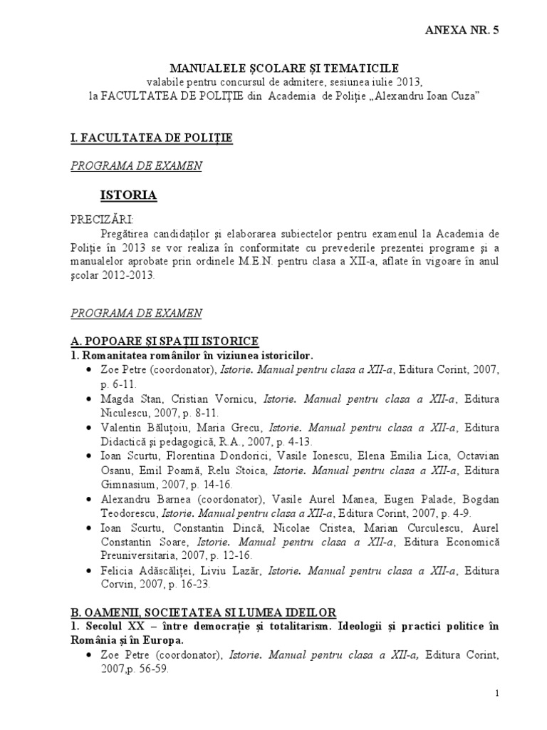 Programa academia de politie. Ii 18717 din 15 07 2020 privind recrutarea candidaților pentru participarea la concursul de admitere organizat în anul 2020 la academia de politie alexandru ioan cuza dispoziție cadru ii 17953 din 2019 cu modificări evidențiate. Acestea m au ajutat să obțin media 9 20 la admitere. Istorie cele 7 manuale alternative de istoria românilor sinteze de istorie de lucia novac. 118 2020 regulamentul de admitere 2020 dispoziția dgmru nr.