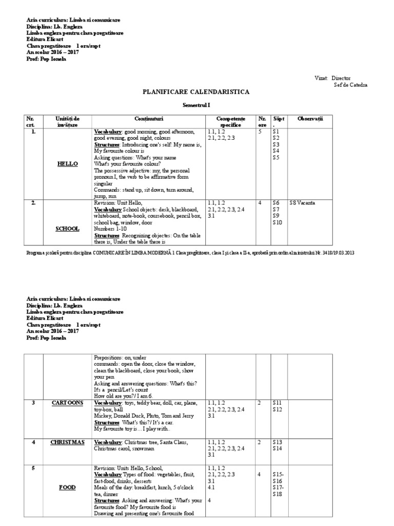 Programa scolara clasa pregatitoare 2016 2017. Clasa pregătitoare clasa i şi clasa a ii a aprobată prin ordin al ministrului nr. Precizari privind aplicarea planurilor cadru si a programelor școlare pentru invatamantul primar în anii școlari 2015 2016 și 2016 2017 manuale școlare in format electronic. Planurile cadru în vigoare pentru anul școlar 2016 2017 pot fi consultate la adresa. 64 b 0249 410 927 0249 412 314 fax.