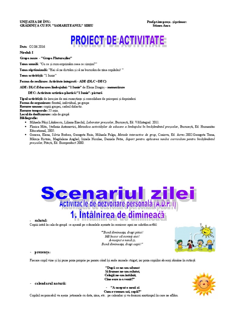 Proiect de activitate 1 iunie ziua copilului. 3 6 ani 6 11 ani. 29 mai 2014 12 11. 1 iunie ziua copilului. 7 august 2011 11 18.