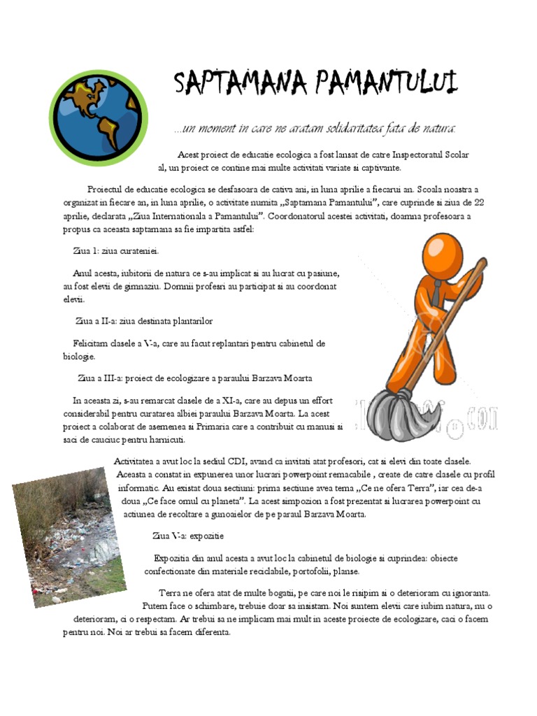 Proiect de activitate ziua pamantului. Iata cum poti sarbatori ziua pamantului impreuna cu copiii sau elevii tai. Cursuri şcoala online cursuri online primar cursuri online gimnaziu cursuri online liceu profesorul la clasă ghid practic de pedagogie resurse educaţionale interactive revista cadrelor didactice evenimente diplome pentru evenimente. 22 aprilie ziua pământului ziua noastră a tuturor noutati plantăm copăcei de ziua pământului imagini parada la fiecare activitate. Un chestionar de satisfacţie beneficiarilor direcţi.