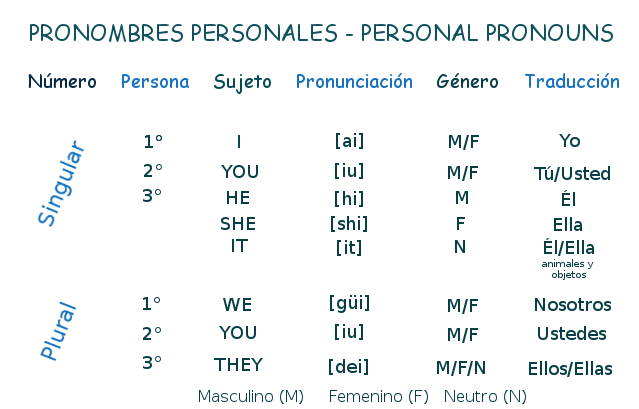 Pronombres Personales En Ingles 1 2 3 Persona