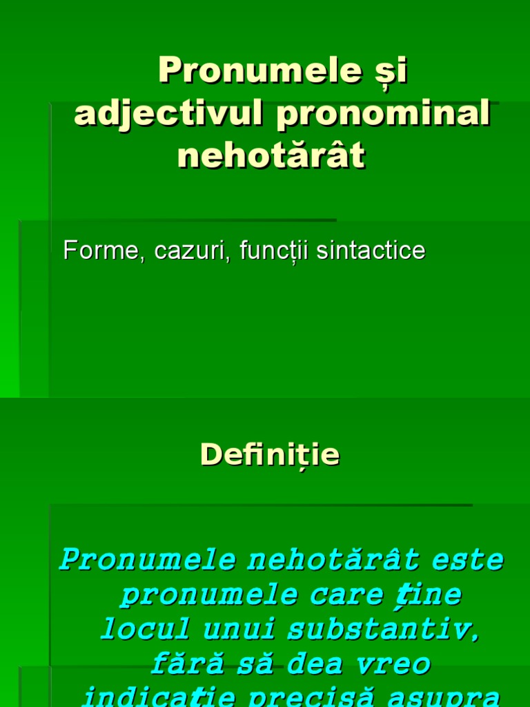 Enjoy the videos and music you love upload original content and share it all with friends family and the world on youtube. Definiţie pronumele nehotărât înlocuieşte un substantiv fără să dea informaţii precise asupra obiectului denumit de acesta. Cele mai multe pronume nehotărâte atât a ceva. Pronumele şi adjectivul pronominal nehotărât i.