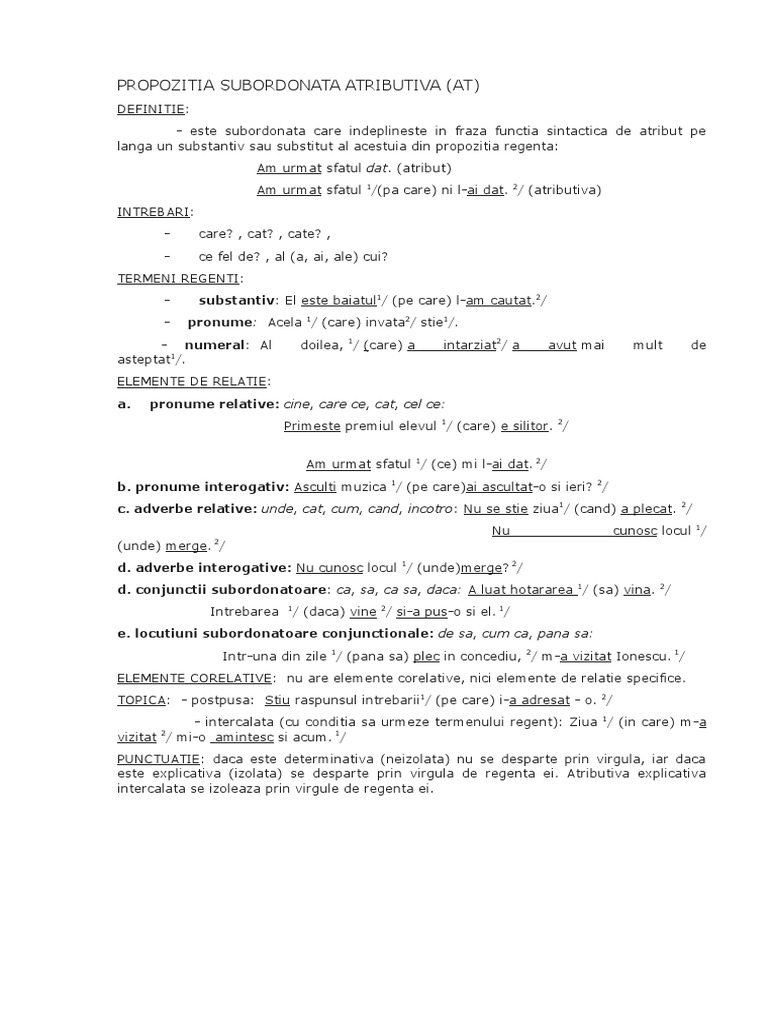 Propozitie atributiva introdusa prin sa. Ca sa daca ce ca sa unde cand oricui cat. Elevul care învață trece examenul propoziția subordonată predicativă propoziția subordonată completivă. Daca este determinativa neizolata nu se desparte prin virgula iar daca este explicativa izolata se desparte prin virgula de regenta ei. Propoziția atributivă poate fi introdusă prin.
