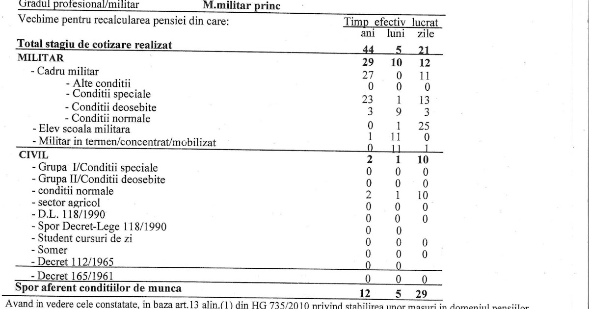 Acesta se va înmulţi cu valoarea punctului de pensie 917 5 lei şi va rezulta o pensie de 1 454 lei. Stagiul minim de cotizare. 57 ani si 5 luni. Cadre in rezerva cel putin 10 ani vechime in serviciu.
