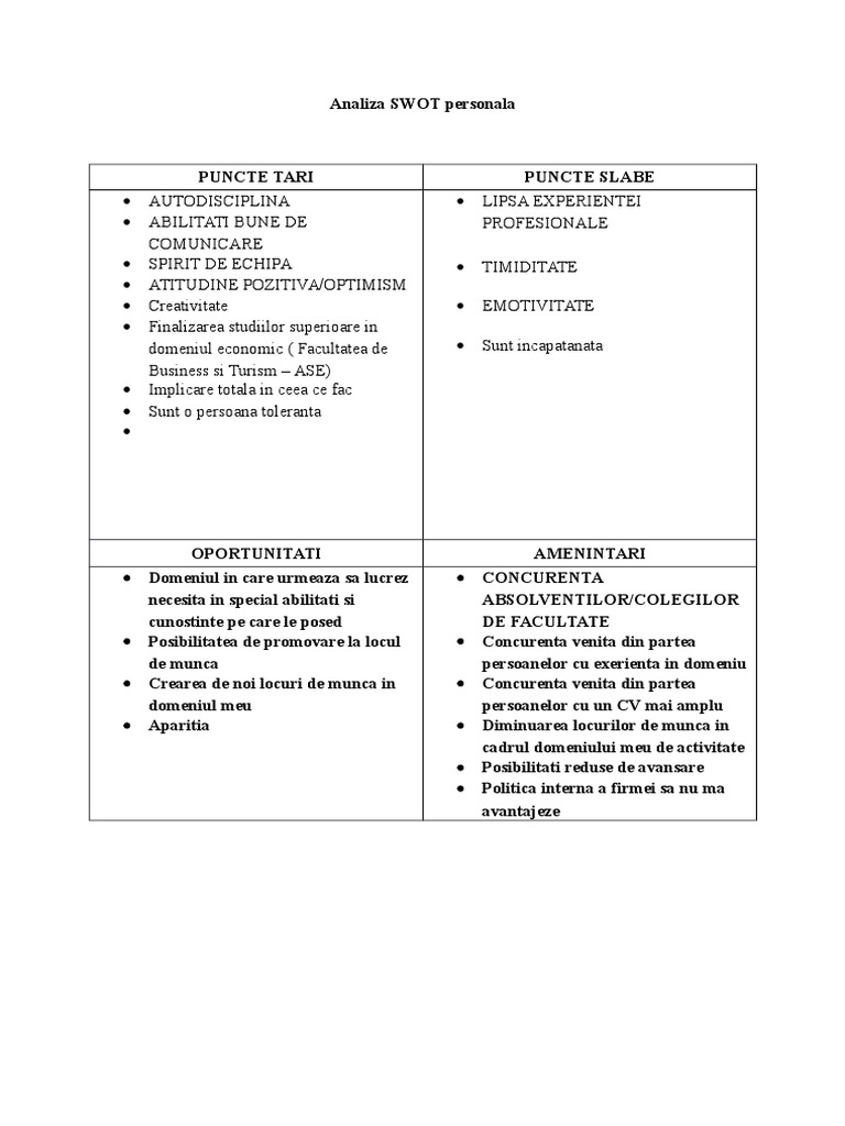 Vom incerca sa stabilim punctele tari si slabe ale orasului precum si oportunitatile de azi si. Mulţi elevi cu rezultate slabe la învăţătură. Analiza swot este un acronim pentru puncte tari puncte slabe oportunitati si amenintari. Analiza swot poate fi folosita atat pentru a evalua un business un proiect dar si o persoana.