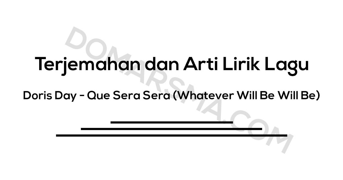 Agan suka nonton bchannel. Que sera sera whatever will be will be apapun yang kan terjadi terjadilah the future s not ours to see kita tak tahu yang kan terjadi di masa depan que sera sera what will be will be apapun yang kan terjadi terjadilah when i grew up and fell in love saat saya tumbuh remaja dan jatuh cinta i asked my sweetheart kutanya kekasihku what lies.