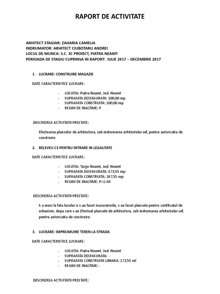 Raport De Activitate La Locul De Munca