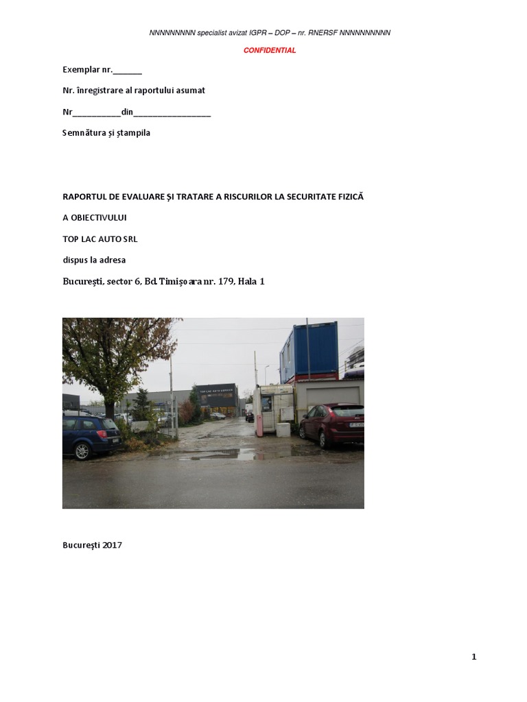 Raport De Evaluare Si Tratare A Riscurilor La Securitatea Fizica Model