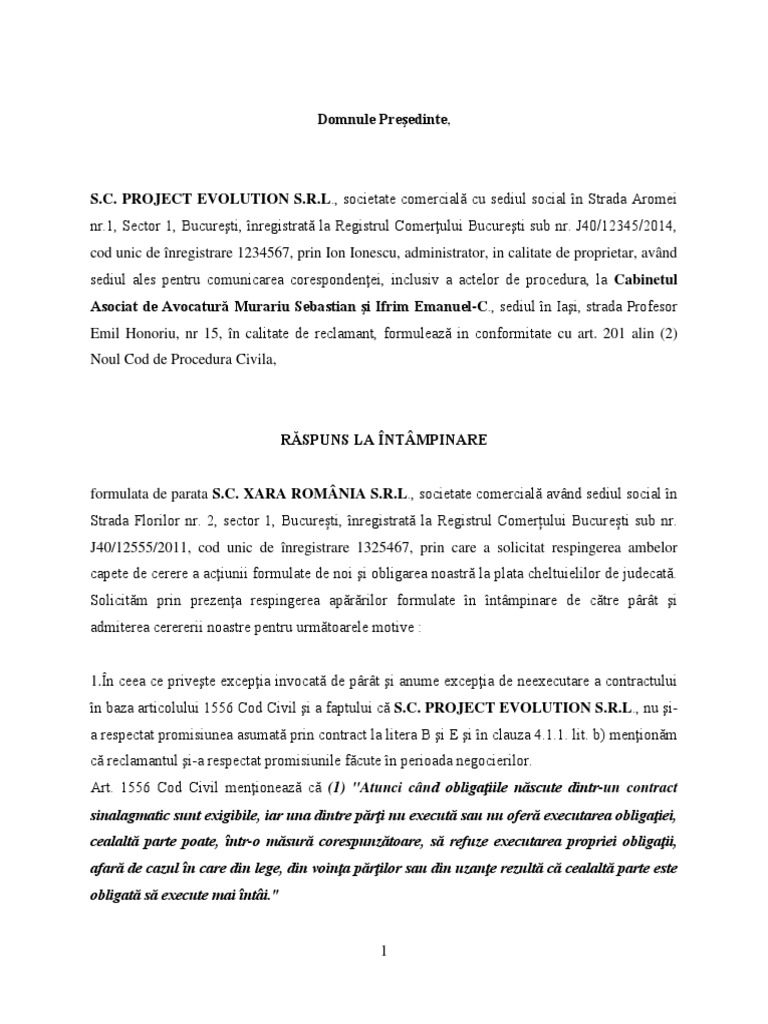 Raspuns la intampinare plangere contraventionala. 7 alin 3 si 7 din legea nr. Răspuns la întâmpinarea formulata la cererea de recurs. Am primit intampinare si trebuie sa formulez un raspuns. Pentru textul integral alegeți un abonament lege5 care permite vizualizarea completă a documentului sau cumpărați documentul în formă completă.