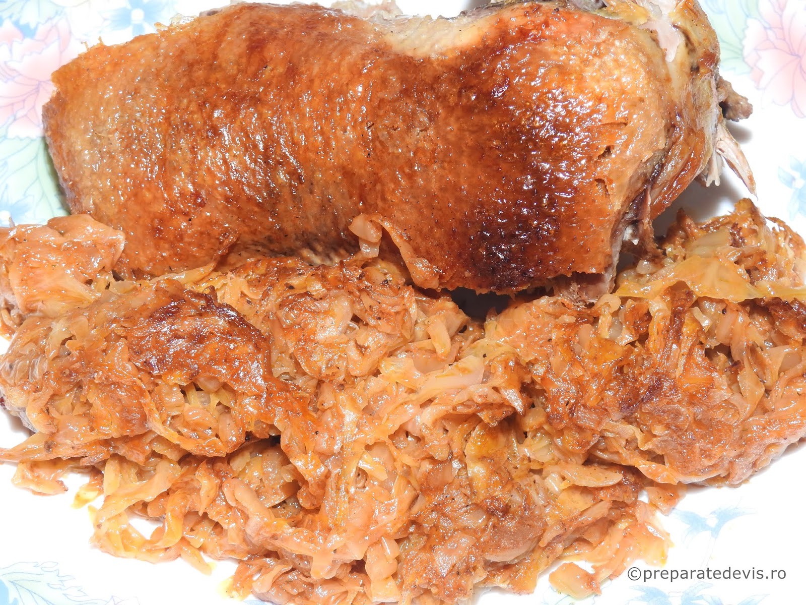 Dupa o ora se dezveleste rata si se mai adauga 200 ml apa sau vin rosu cind s a rumenit rata se intoarce in cratita pentru a se rumeni si pe cealalta parte. Reteta pe care v o impartasesc astazi este un. 2 kg varza dulce tocata marunt. Scoate un pic rața deoparte pune varza pat pe fundul tăvii și pune rața la loc peste.