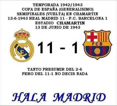 On 13 june 1943 real madrid beat barcelona 11 1 at home in the second leg of a semi final of the copa del generalísimo the copa del rey having been renamed in honour of general franco. De la cuna hasta su primer gol. 116 likes 1 talking about this. The first leg played at barcelona s les corts stadium in catalonia had ended with barcelona winning 3 0.