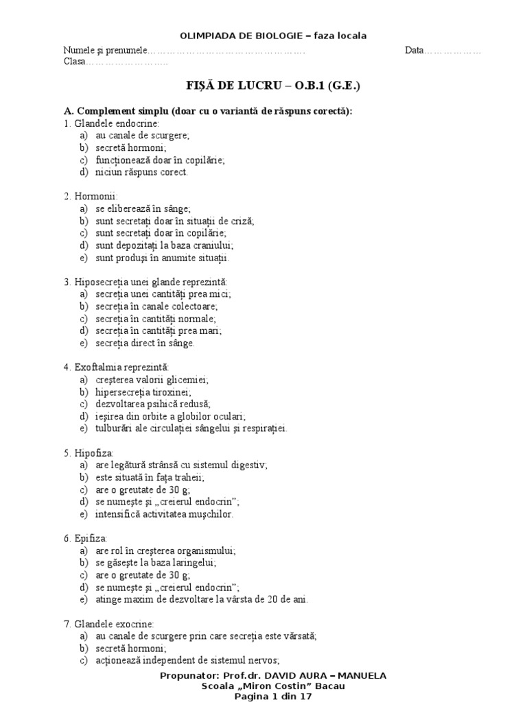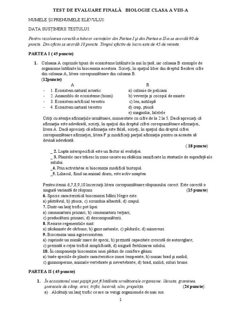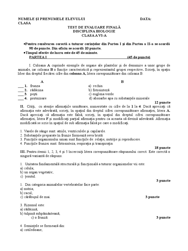 învăţământ gimnazial biologie lecţii clasa a 5 a. Model de test initial biologie gimnaziu clasa a v a by inspector scolar ultima modificare 2011 09 21 06 12 evaluare initiala clasa a v a rar application rar 12 kb 13114 bytes foarte important stiri important. Test algebra grila. Recapitulare clasa a 5 a rezolvă testul recapitulare clasa a 5 a pe platforma educațională kidibot.