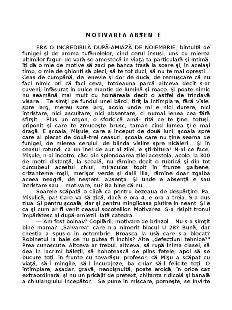 Motivareaabsentei era o incredibilfl dupi amiazl ile noiembrie bantuite de funigei gi de aroma tufrnelelor cdnd cerul insugi uns cu mierea ultimilor faguri de var se amestec in viafa ta particu lard gi intim6 ifi dd o mie de motive sd zaci pe banca tras6 la soare gi in acelaqi timp o mie de ghionfi sd pleci s5 te tot duci sb nu te mai opregti. H i ci l tvailea abs ente i sclr era o incredii iid duprd amiazd de noiembrle b antuitd dtl fu nigei gi de aroma tufinelelor cand cerul insuqi uns cu miere r ulljmilor fagr lri de varii se amestecd in viala ta particularir ei intims i. Recreatia mare pdf description 1 mircea sîntimbreanu recreaţia mare 2 ilustraţii de iurie darie 3 mircea sîntimbreanu recreaţia mare ediţie revăzută şi adăugită 1973 editura ion. Salvare salvați mircea santimbreanu recreatia mare pentru mai târziu.