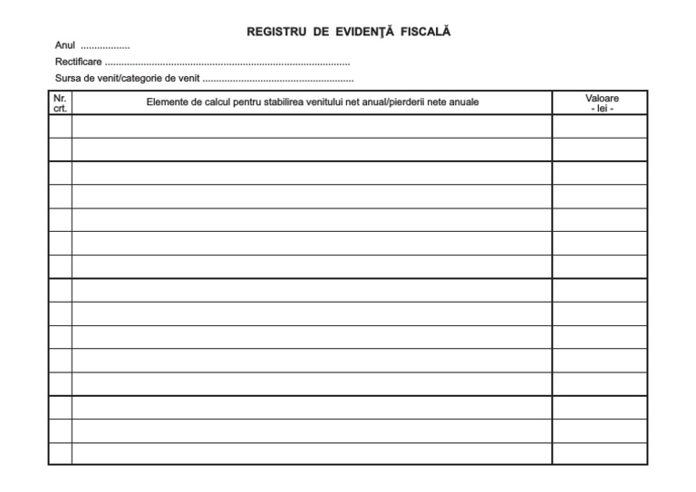 Registrul de evidenta fiscala pfa. In registru evidenta fiscala pfa care fara indoiala nu poate fi asimilat cu cel al sc platitoare de impozit profit pentru care sunt importante cheltuielile si veniturile nu incasari si plati trebuie completat conform o m f p. Registrul de evidență fiscală anul 2019 sursa de venit categorie de venit. 3 254 2017 din 19 decembrie 2017 publicat în monitorul oficial nr. Registrul de evidență fiscală pfa persoane fizice omfp 3254 2017 potrivit ordonanţei de urgenţă a guvenului nr.