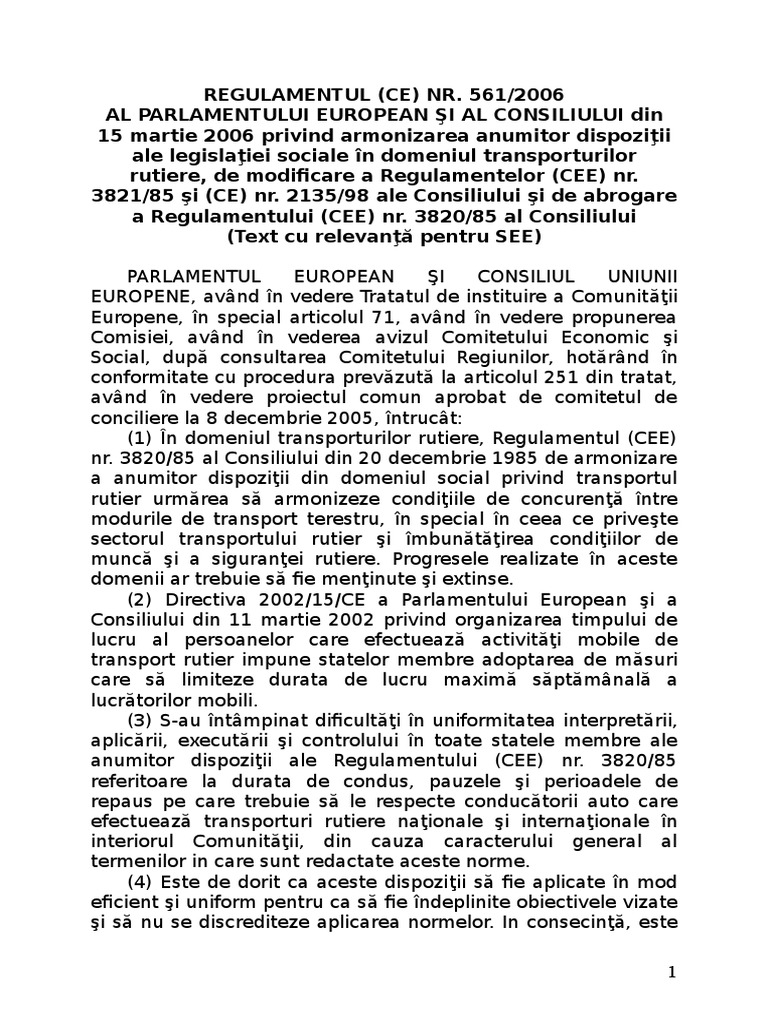 Regulamentul 561 din 2006 actualizat. 2 teza finală din legea nr. 561 2006 au fost introduse la art. 2135 98 ale consiliului și de abrogare a regulamentului cee nr. 3821 85 şi ce 2135 98 ale consiliului şi de abrogare a regulamentului cee nr.