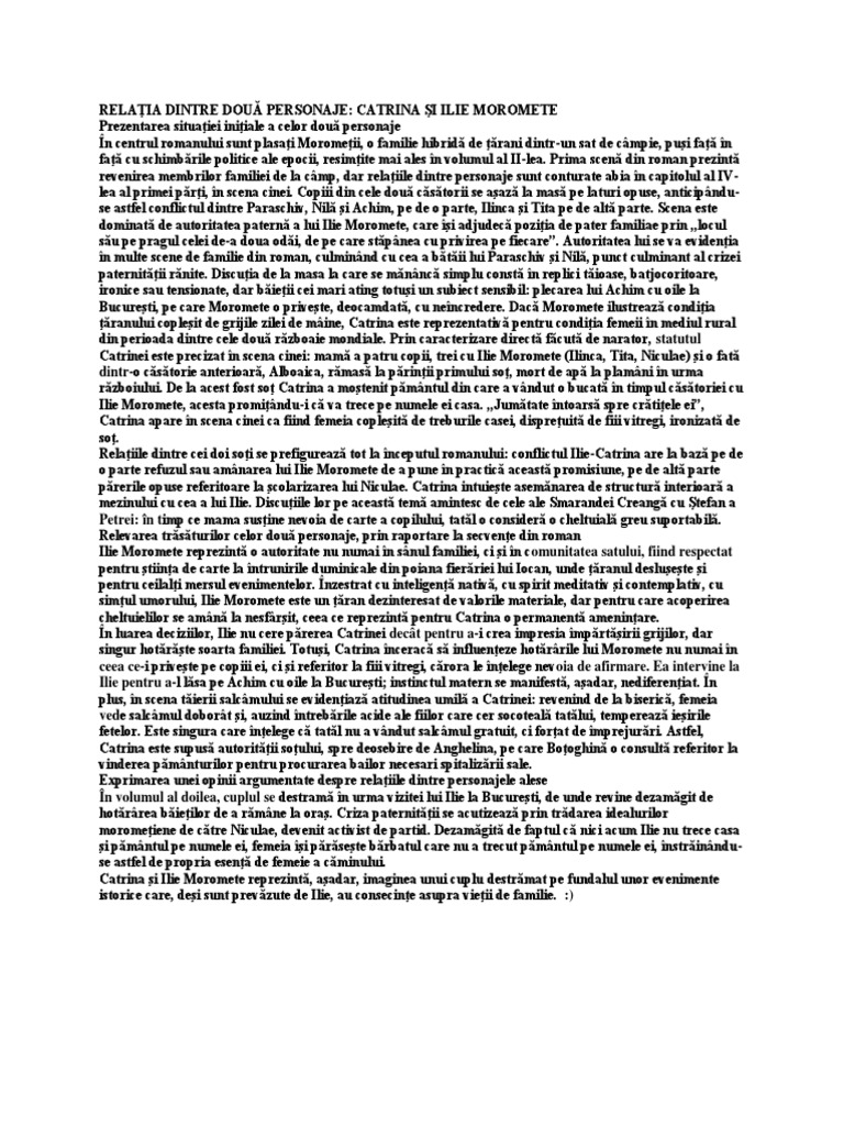 Relatia dintre 2 personaje morometii. Personaj feminin roman postbelic catrina. Scriitorii erau nevoiți să prezinte aspectele pozitive ale sistemului stalinist. Sunt de părere ca romanul morometii surprinde prin personajul ilie moromete drama taranului roman menit sa se confrunte cu transformările istoriei. Salvare salvați relatia 2 personaje morometii pentru mai târziu.