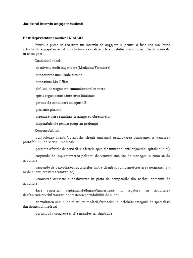 Buna ziua va rog sa imi spune ti daca ma pot angaja ca reprezentant medical la o companie farmaceutica daca am studii de specialitate. Furnizeaza informatii specializate despre produsele promovate de ei. Producatori distribuitori furnizori servicii ssm auditul resurselor umane nefertiti human. Intreg personalul sectiei institutiei poate fi înlocuit temporar de.