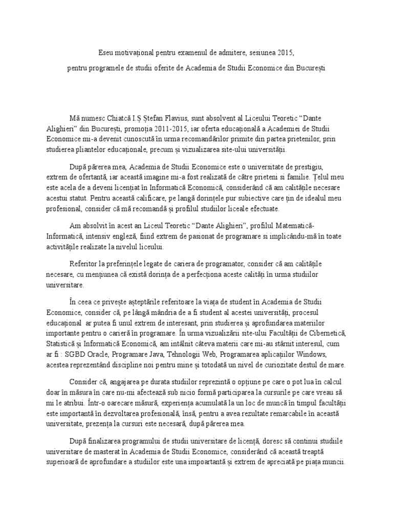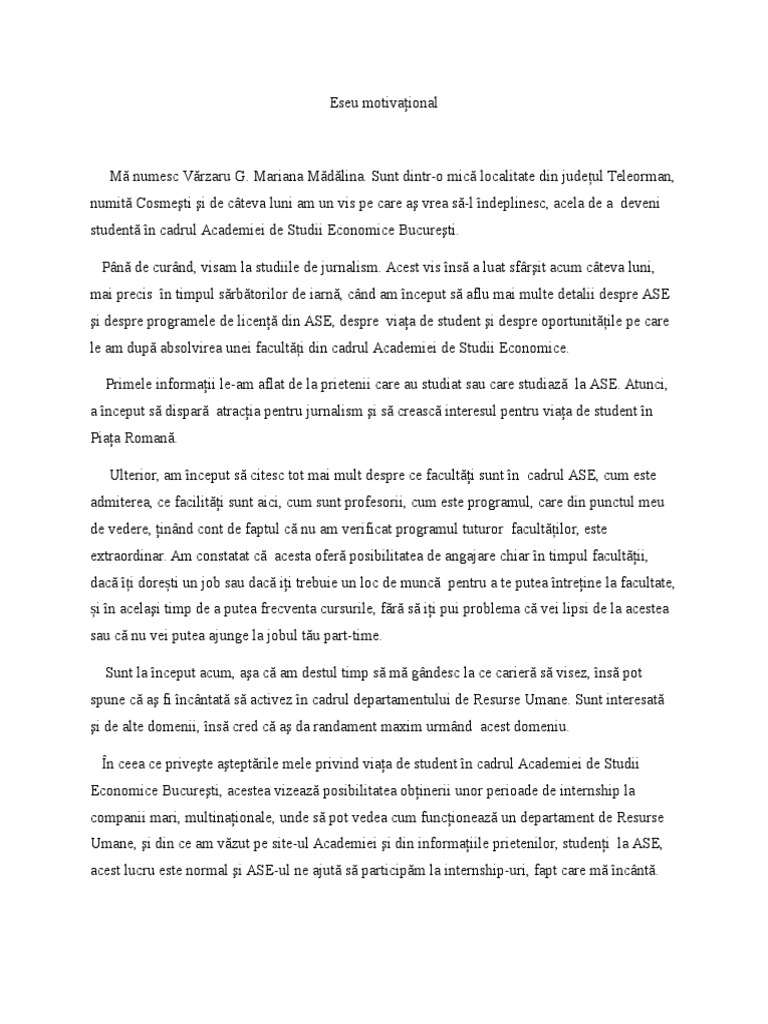 Rezultate eseu motivational ase. Acesta este considerat din ce în ce mai mult un consilier şi un partener al managerilor. Academia edu is a platform for academics to share research papers. Eseu motivational admitere licenta ase marketing id. Eseul motivational este o lucrare cu o intindere cuprinsa intre 500 si 1000 de cuvinte.