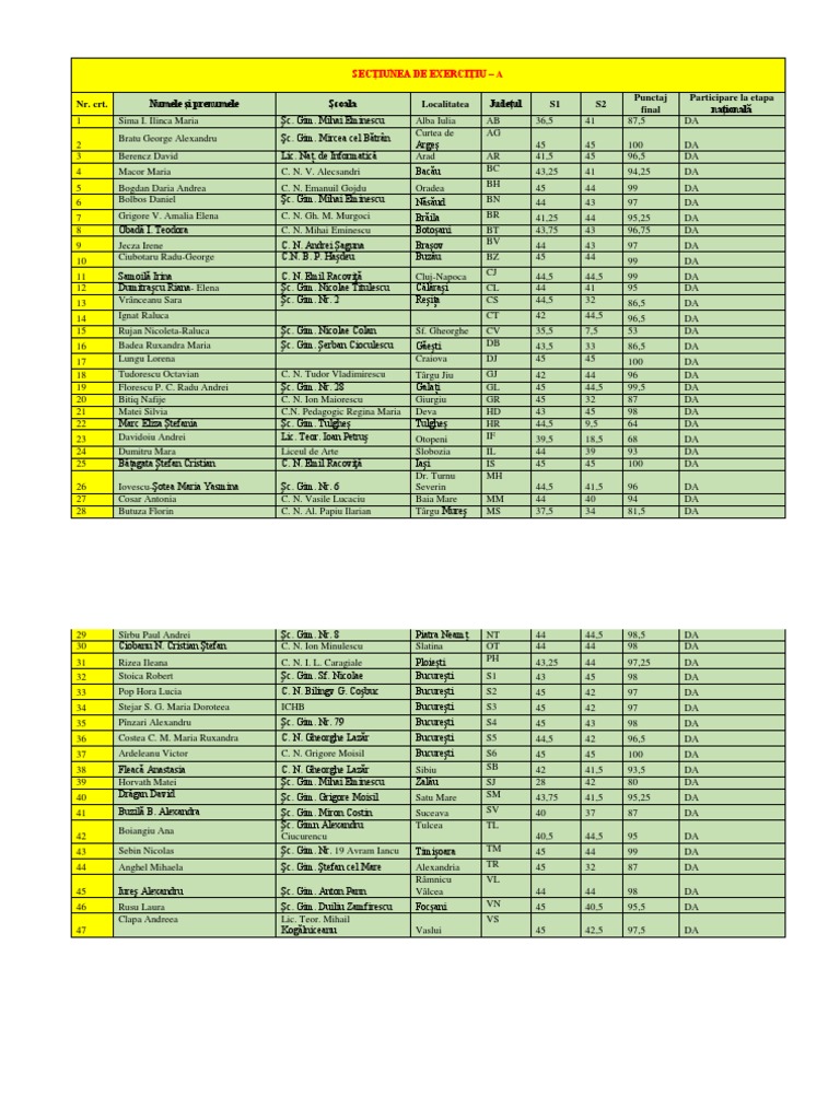 Câte 4 elevi pentru fiecare județ și pentru fiecare sector din bucurești dar și 23 de elevi în ordine valorică din clasamentul național din care eliminăm elevii care deja s au calificat pe primul loc și vin la națională care reprezintă ierarhia în ordinea mediei de la secțiunea pentru.