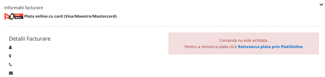 Dupa ce ti s a confirmat anularea comenzii poti initia o noua comanda asigurandu te inainte de a ajunge in pasul final trimite comanda ca ai ales metoda de plata potrivita tie si ca ai toate produsele pe care ti le ai dorit in cos. Mai jos detaliile de expediere. Mi au trimis mesaj pe la ora 9 30 ca ma vor contacta pentru a primi comanda si am mai verificat o data situatia coltului si la ora 10 imi apare la targu jiu de unde a plecat cu situatia ridicare din comanda client fara. Coletul se afla in depozit.